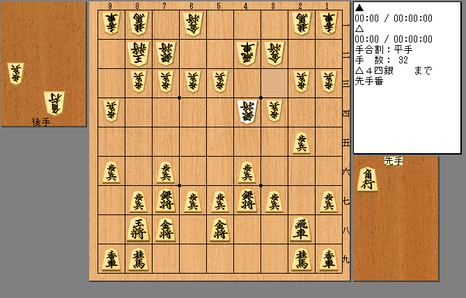 △3二金 ▲3六歩 △6四角 ▲3七桂 △4二銀 ▲2九飛