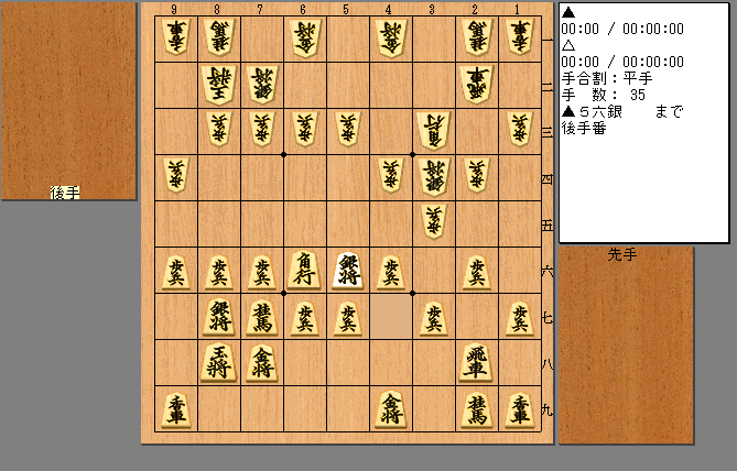 △4二銀 ▲3六歩 △3二金 ▲3七銀 △2一飛