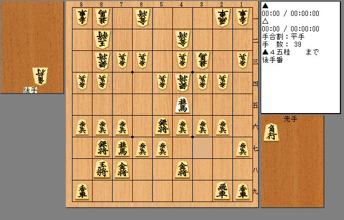 △3二金 ▲3六歩 △6四角 ▲3七銀 △4五桂