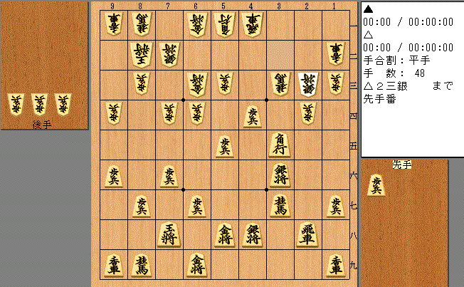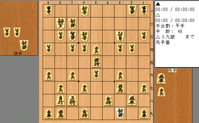 ②vsM五段。四間飛車で対穴熊に▲6六銀型。相手に上手く右桂を捌かれてやや苦しい展開。駒損になったが、離されないようなんとか着いていけていたようです。最後は1手差で先に穴熊を寄り切って○。