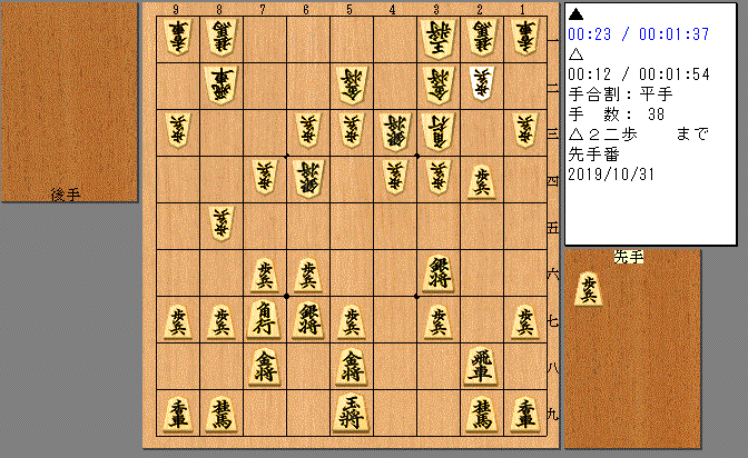 ▲2六歩 △3二銀 ▲2五歩 △3三角 ▲3八銀 △7四歩